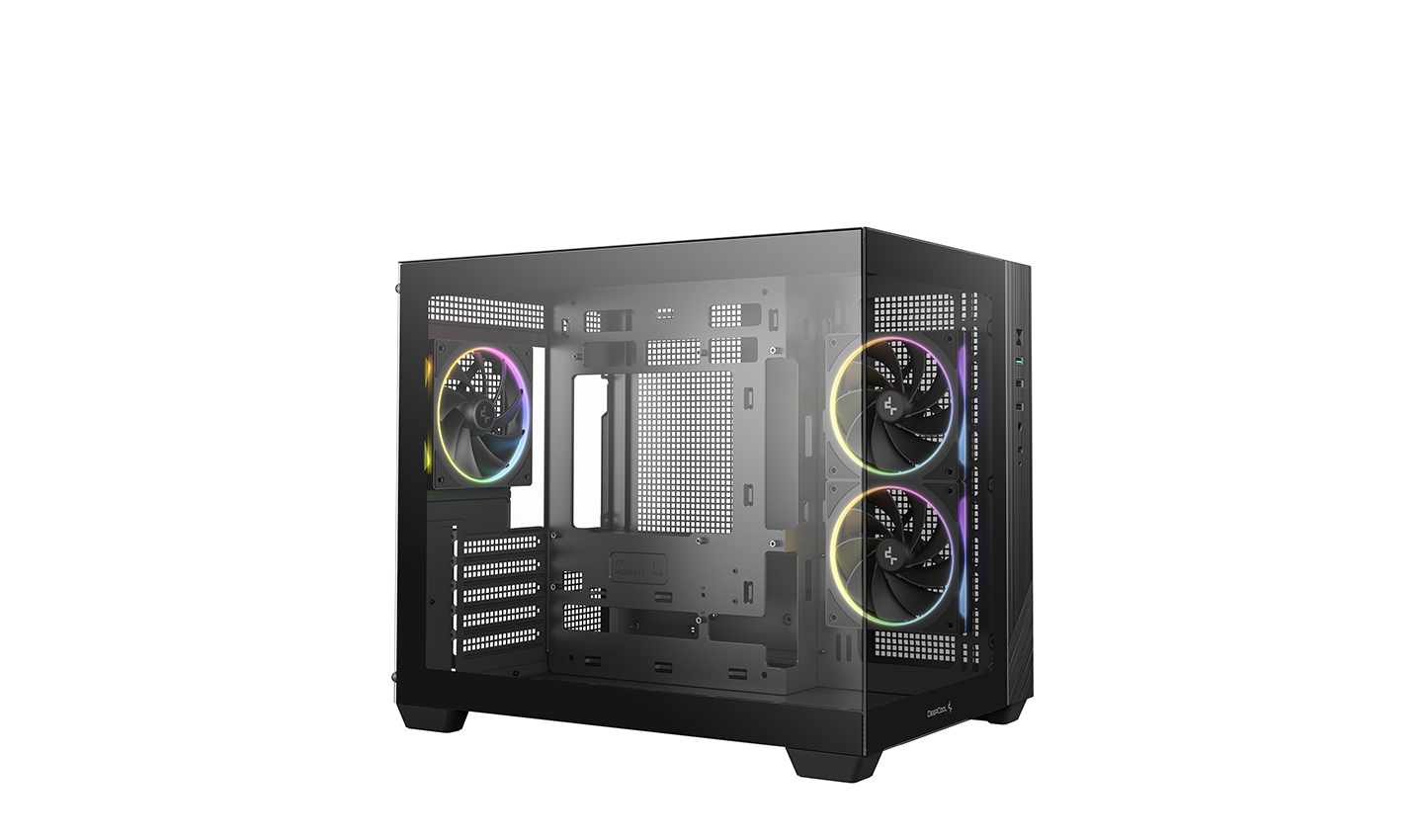 CG330 3F는 측면에 리버스 블레이드 FL 시리즈 팬 2개와 후면에 표준 팬 1개가 기본 장착되어 있어, 수평 공기 흐름 채널을 형성하여 효율적으로 쿨링합니다. 딥쿨만의 독창적인 조명 디자인은 시스템 전체에 고르게 빛을 퍼뜨립니다.