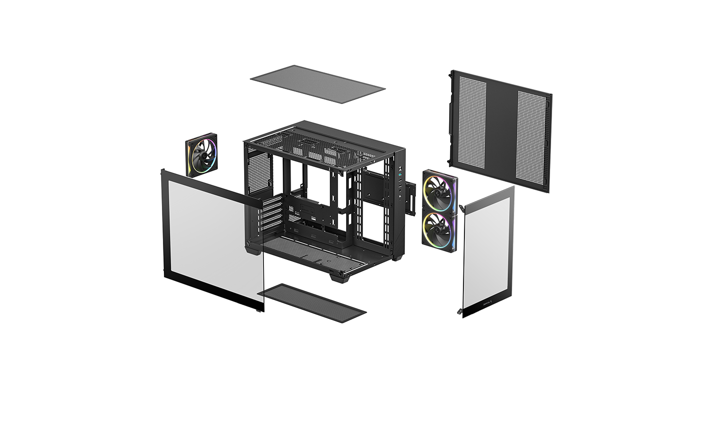 이중 챔버 레이아웃으로 파워 서플라이와 저장 장치를 주요 공기 흐름 경로에서 분리하여 깔끔한 시스템 구성을 시작할 수 있습니다. 이를 통해 냉각 효율이 향상되며 내부 공간 활용도가 더욱 높아집니다.