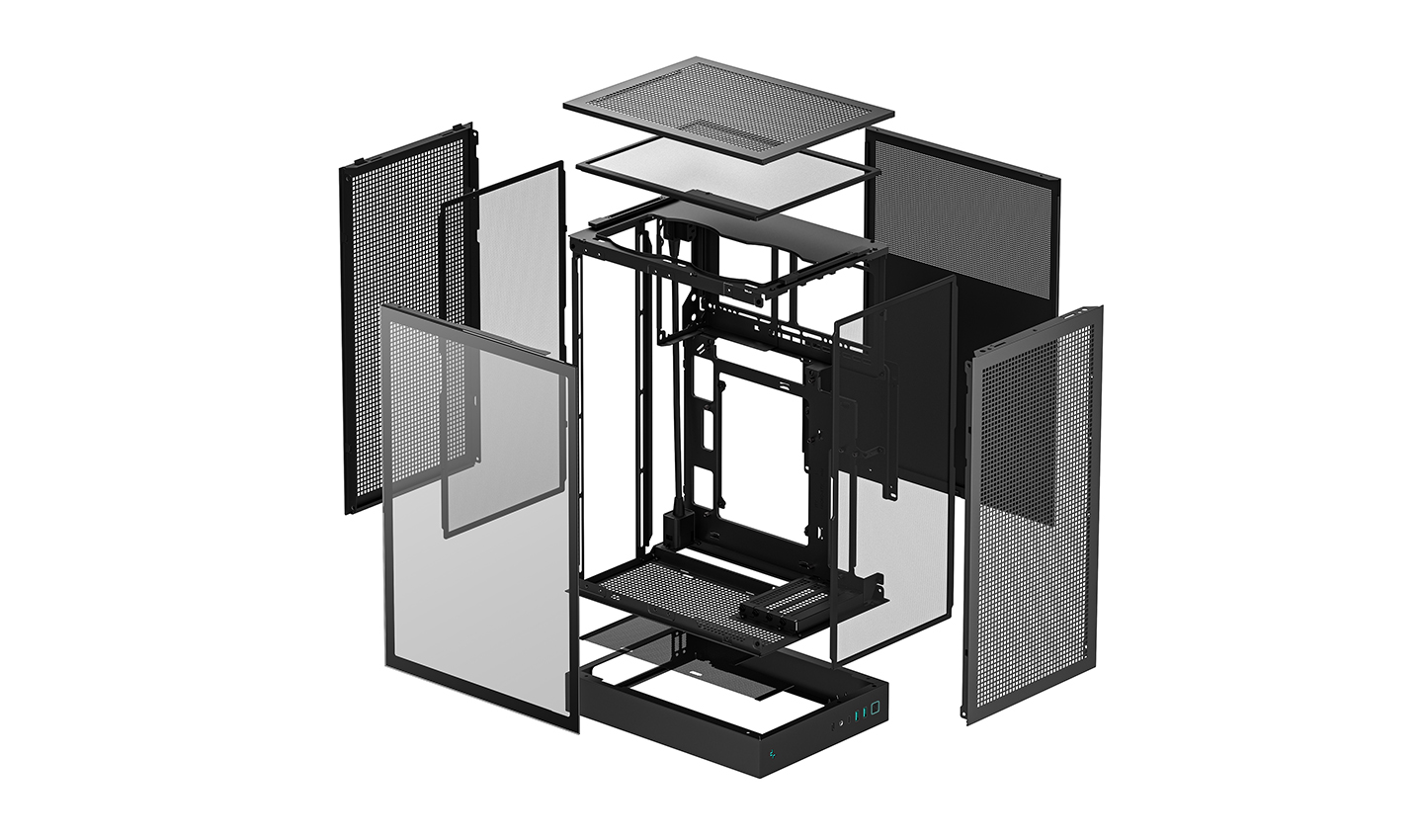 일체형 메시 패널과 최대 6개의 120mm 냉각 팬 배치로 인해 컴팩트한 시스템 내부에 시원한 공기가 효과적으로 흐르며 열을 제거합니다. 냉각 솔루션 지원 범위는 측면에 최대 360mm AIO 수랭 쿨러 또는 CPU에 최대 174mm 높이의 타워형 공랭 쿨러까지 장착할 수 있습니다.